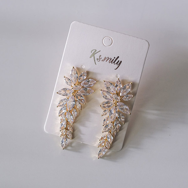 ジルコニアの輝きが、まるで本物のダイヤモンドのような輝きと美しさを放つ、ゴールドカラーのブライダルイヤリング。