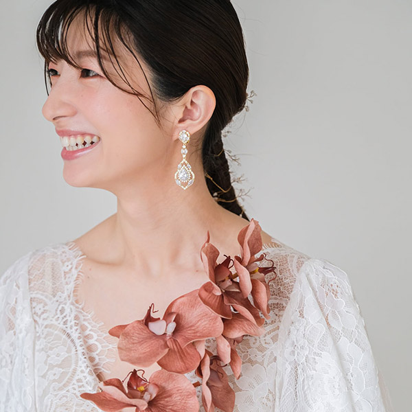 優雅で華やかな雰囲気が、花嫁の笑顔とともに輝き美しく彩ります。