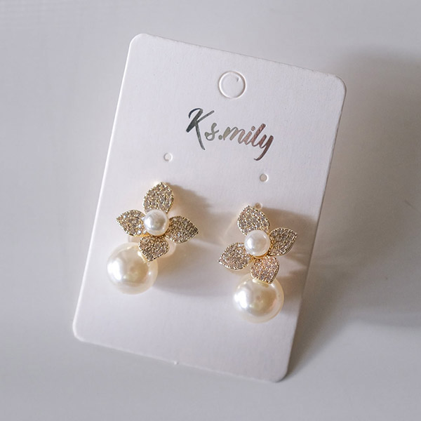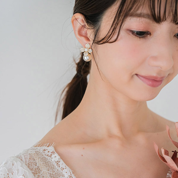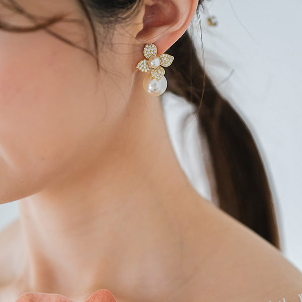 ジルコニアの輝きと上品なパールでつくられたお花のようなデザインが、清楚で可憐な印象を与えてくれます。