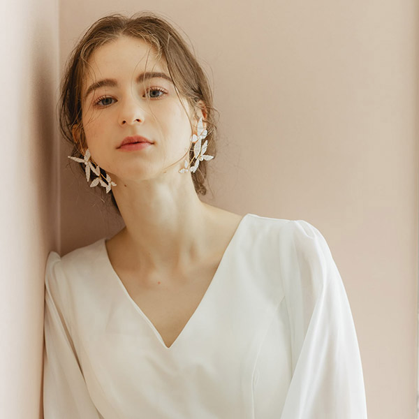華やかなドレスはもちろん、ダウンスタイルやカジュアルなコーディネートに合わせても、女性の品格を引き立てます。