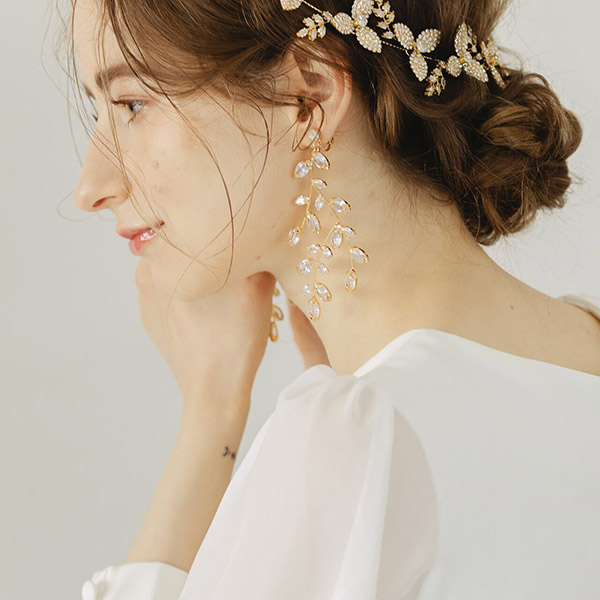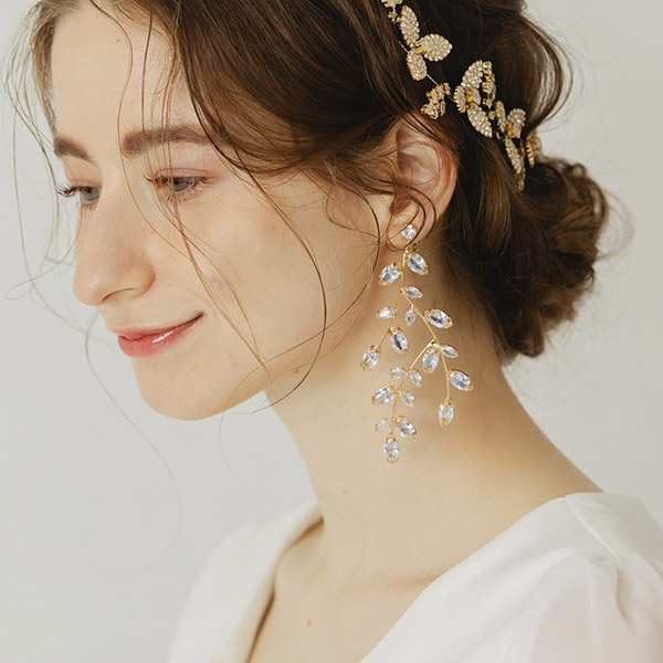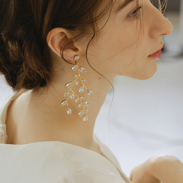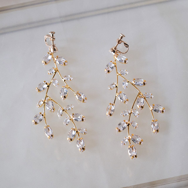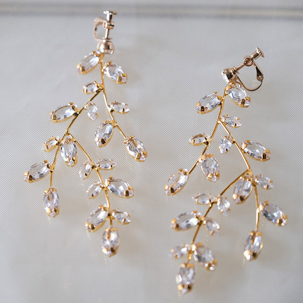 キラキラと上品な輝きが美しいリーフモチーフのブライダルイヤリングです!