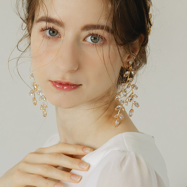 シンプルながらもエレガントさが漂う一品は、ウェディングドレスやパーティードレスとの相性も抜群。