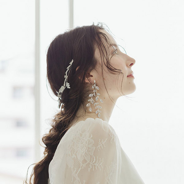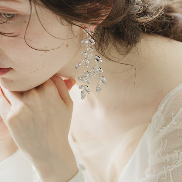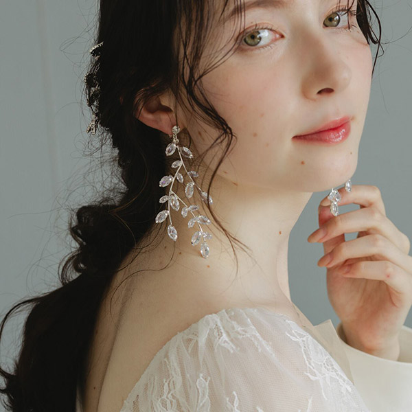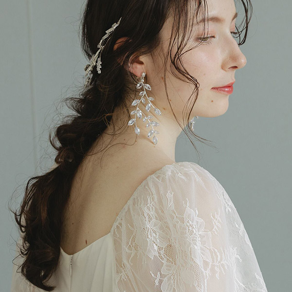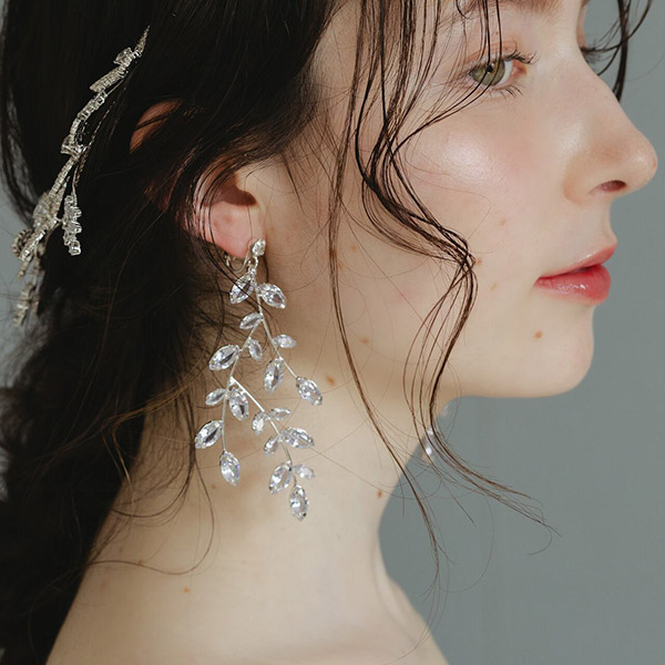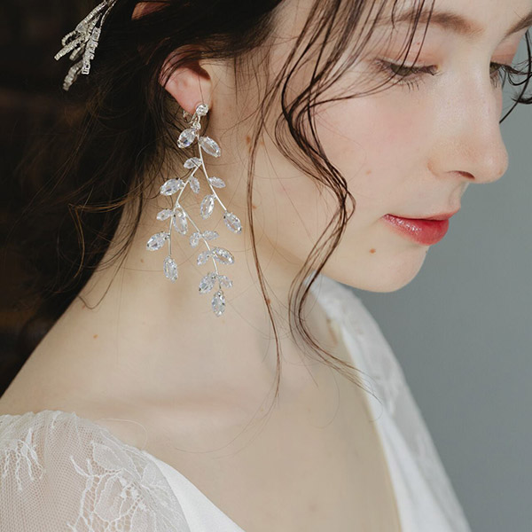 キラキラと上品な輝きが美しいリーフモチーフのブライダルイヤリングです!