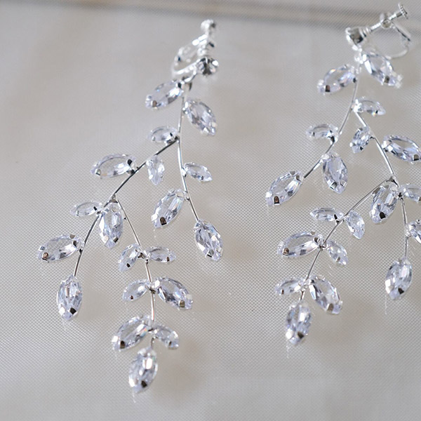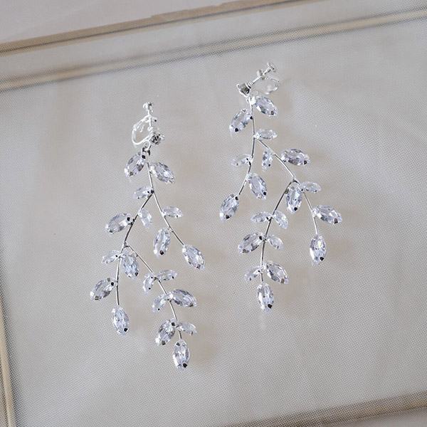 【送料無料】メール便 ウェディングイヤリング ジルコニア リーフ シルバー w3-pe119|ウェディング・ブライダルアクセサリーならPIARY(ピアリー)