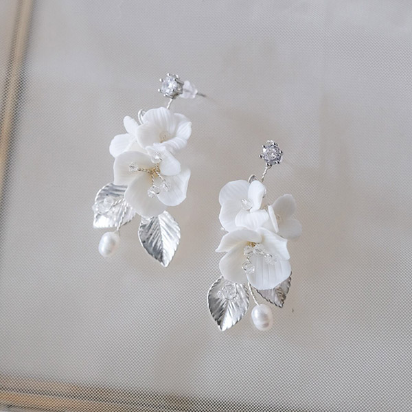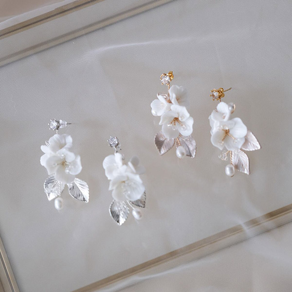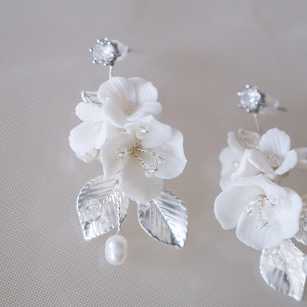 【送料無料】メール便 ウェディングイヤリング 小枝 ホワイトフラワー ビジュー シルバー w9-pe131|ウェディング・ブライダルアクセサリーならPIARY(ピアリー)