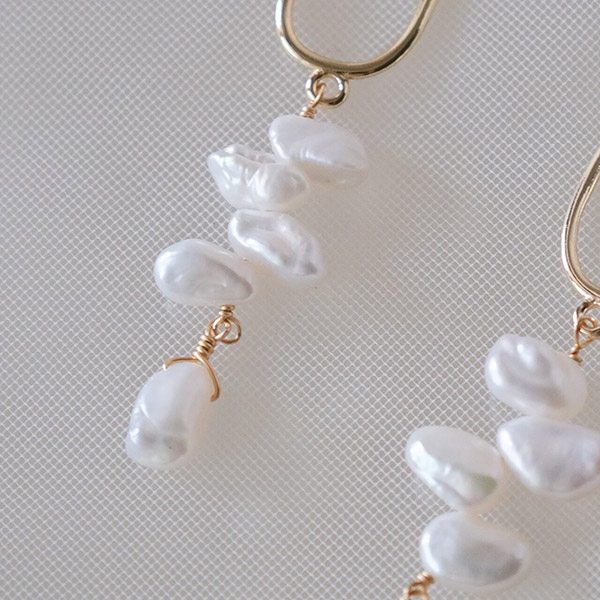 ゴールドの煌めきと、美しく淡いバロックパールの輝きが、華やかで上品な印象のイヤリングです!