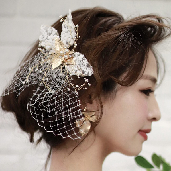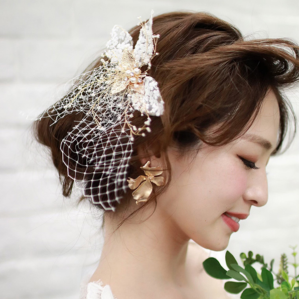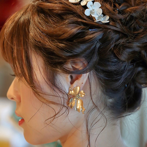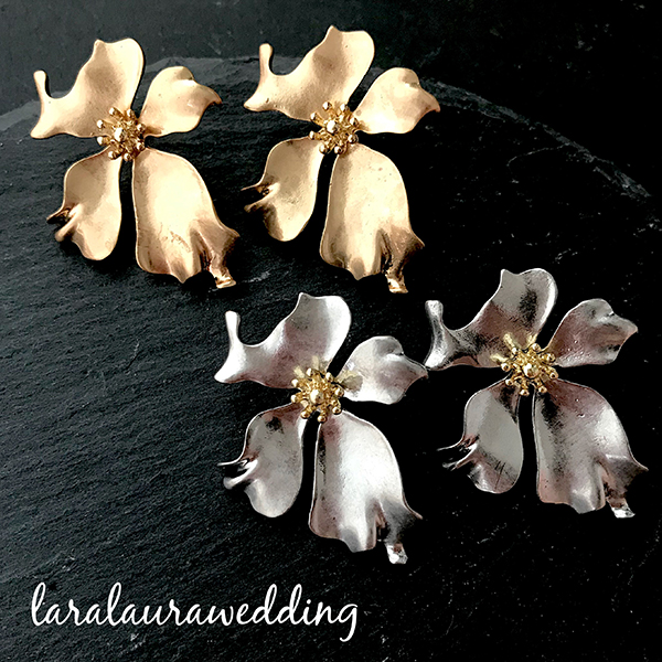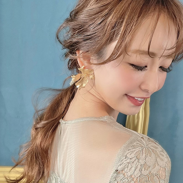 マットフラワーのイヤリング。レースのドレスや、カラードレスにあわせて、フラワーのワンポイントでよりおしゃれに。