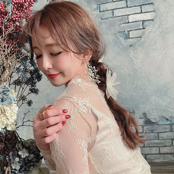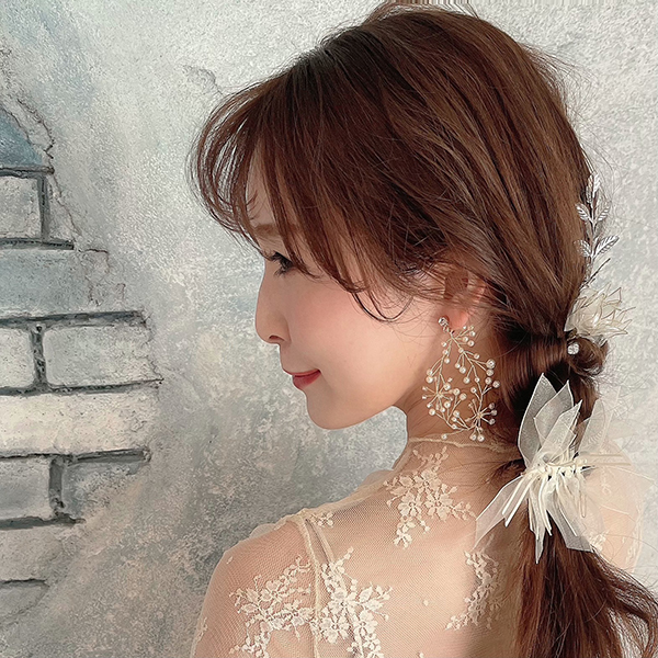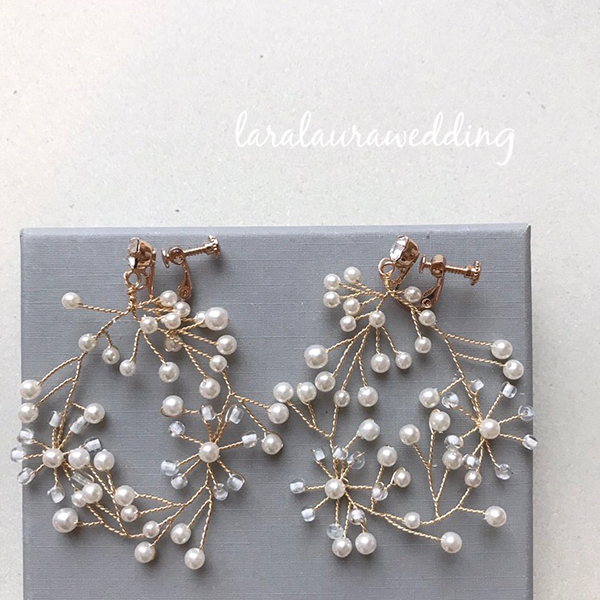 パールとクリスタビーズ、ゴールドのワイヤーでシンプルに紡いだデザイン。小枝のアクセや、フラワーのヘッドドレス合わせていただけます。ウェディングドレス、カラードレス、和装 合わせやすいデザインとなります。