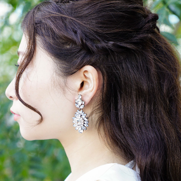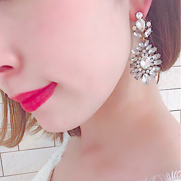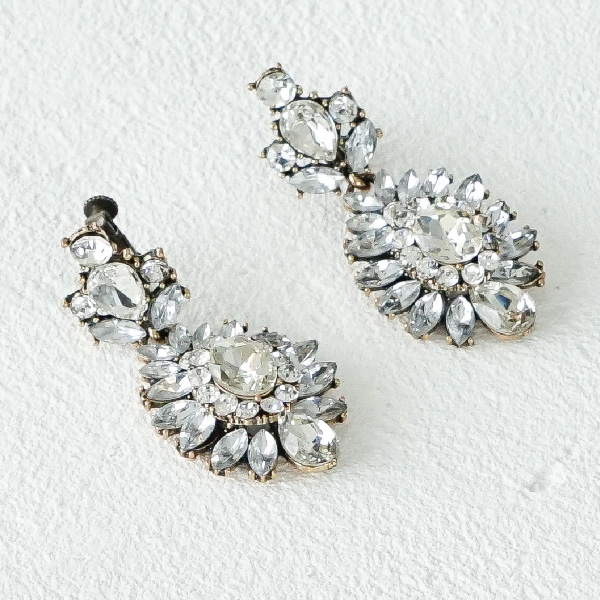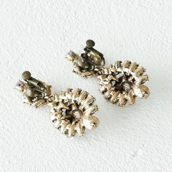 vintageの雰囲気のあるイヤリング。ヴィンテージゴールド地金にクリスタルストーンをたっぷり埋め込んでおります。