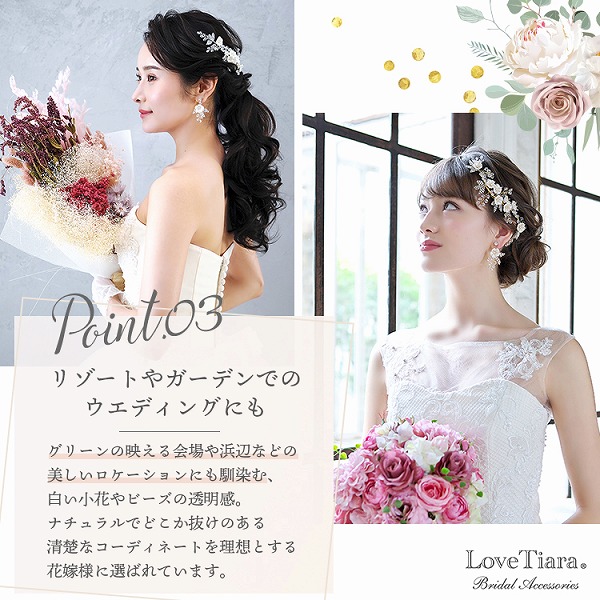 12月のフォトウエディングのために購入しました。手に取ると、写真で見るよりも白い花が立体的で厚みがありましたが、遠目だと存在感があって良いのかなと思います。着用する日が楽しみです!