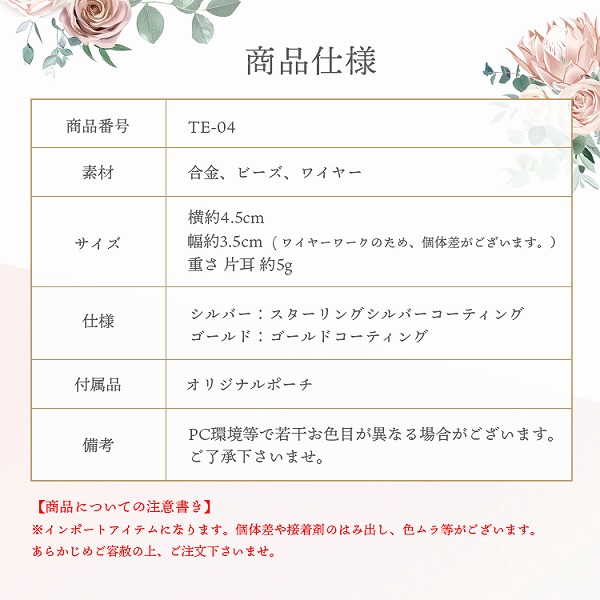 繊細で華奢な小枝アクセサリーです。お花モチーフとビーズを織り込んだイヤリング。