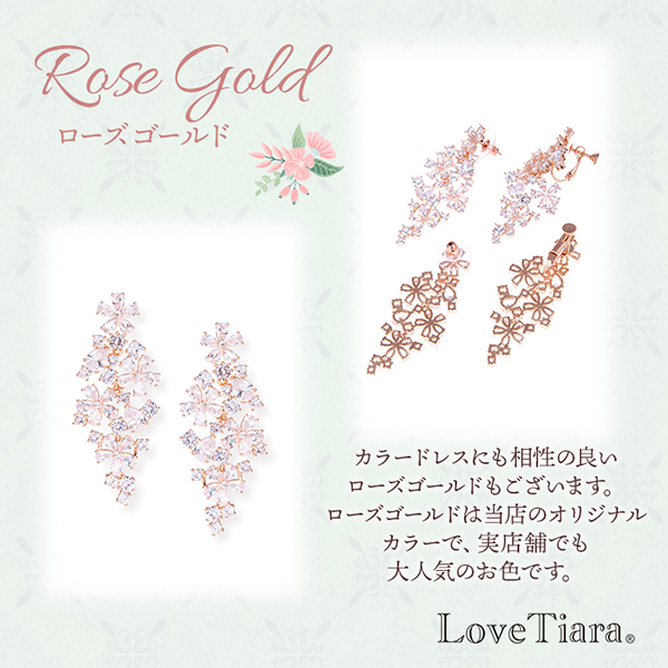 メール便 ウェディングイヤリング キャスケードジルコニア ローズゴールド|ウェディング・ブライダルアクセサリーならPIARY(ピアリー)