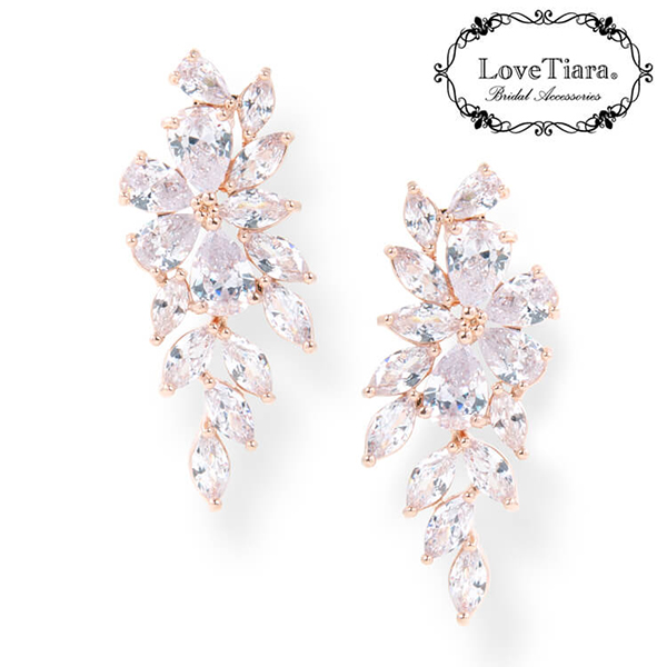 キュービックジルコニアを使用したラグジュアリーなイヤリング。マーキスとドロップ型のキュービックジルコニアを連ねたお洒落なイヤリングです。下部の4粒のマーキスは揺れる仕様になっており、歩く度に煌めきます。