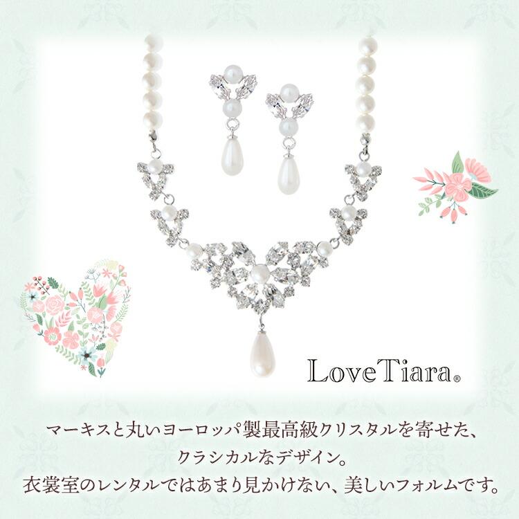 上質な輝きを放つヨーロッパ製最高級クリスタルと上品なパールを使用したパールネックレスとイヤリングのセット。
