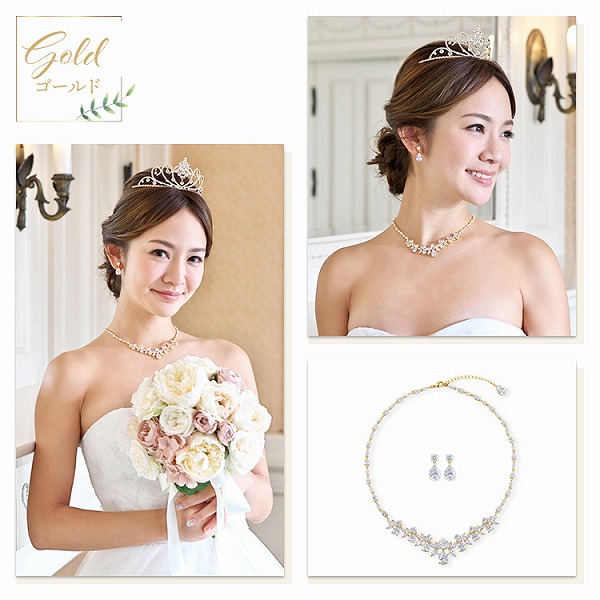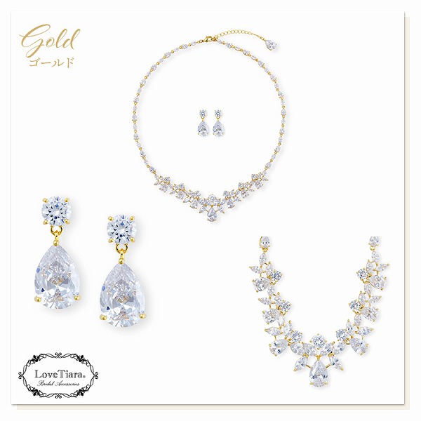 ウェディングイヤリング アイリスジルコニアネックレス&ウェディングイヤリング ゴールド|ウェディング・ブライダルアクセサリーならPIARY(ピアリー)