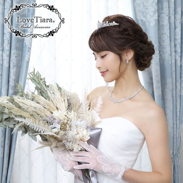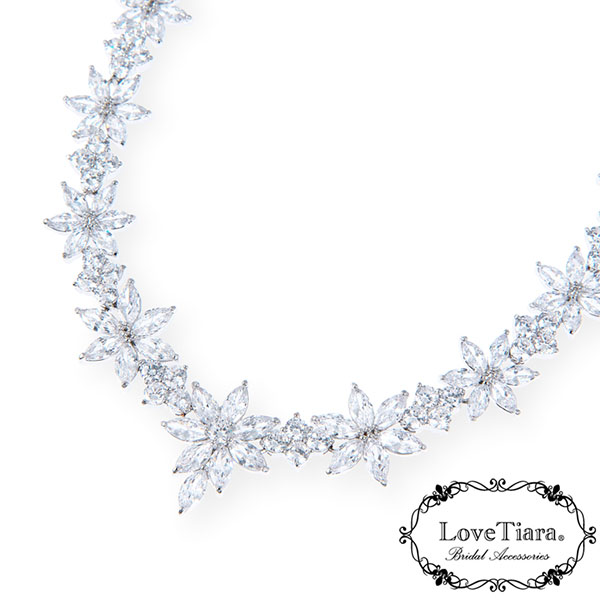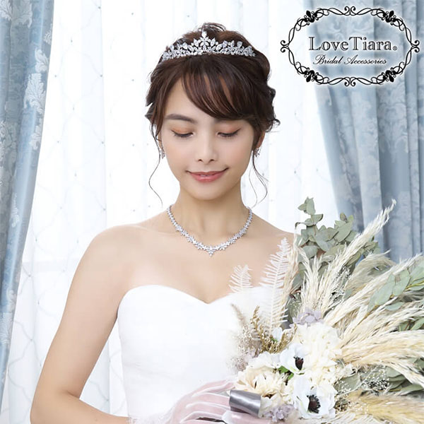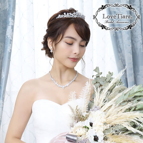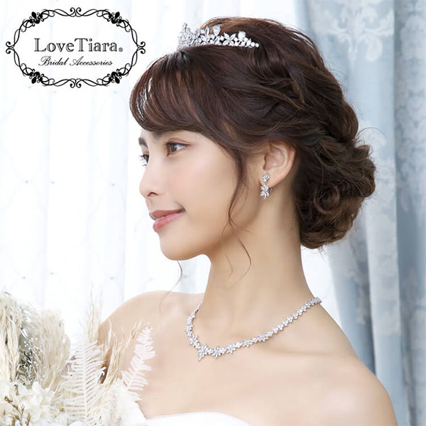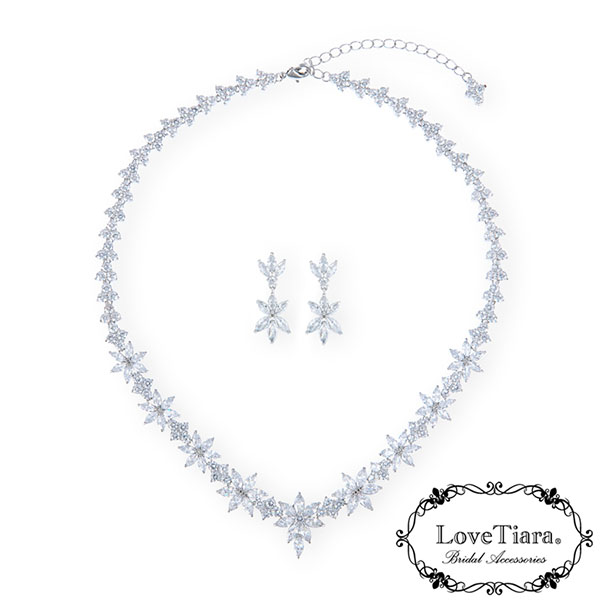 LoveTiaraオリジナルアイテム。キュービックジルコニアを使用したラグジュアリーなネックレス&イヤリングのセット。