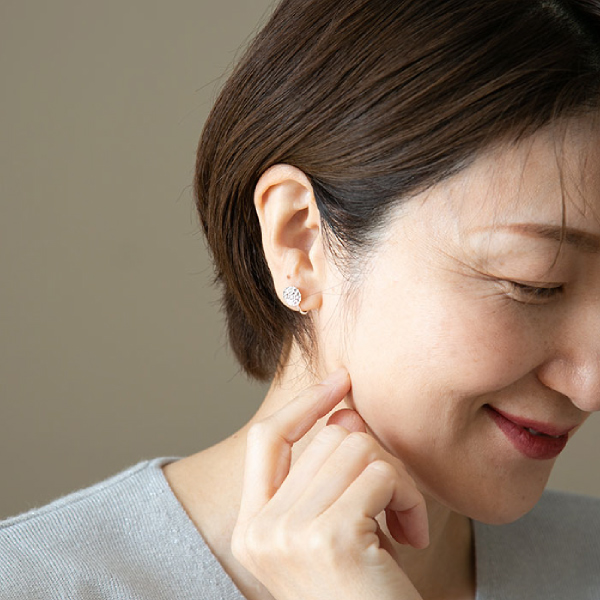 フラワーモチーフのイヤリングです。花の形を表現した繊細なデザインが、錫本来の落ち着いた輝きを引き立て、カジュアルでも上品な印象を与えてくれるアイテムです。身に着けるシーンを選ばないので、普段使いにも特別な日にも◎。ダリア・ガーベラの花言葉は「感謝」。母の日のプレゼントなど、贈り物としてもおすすめです。