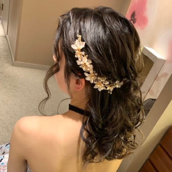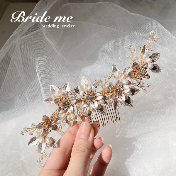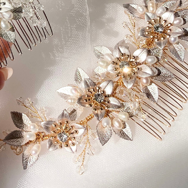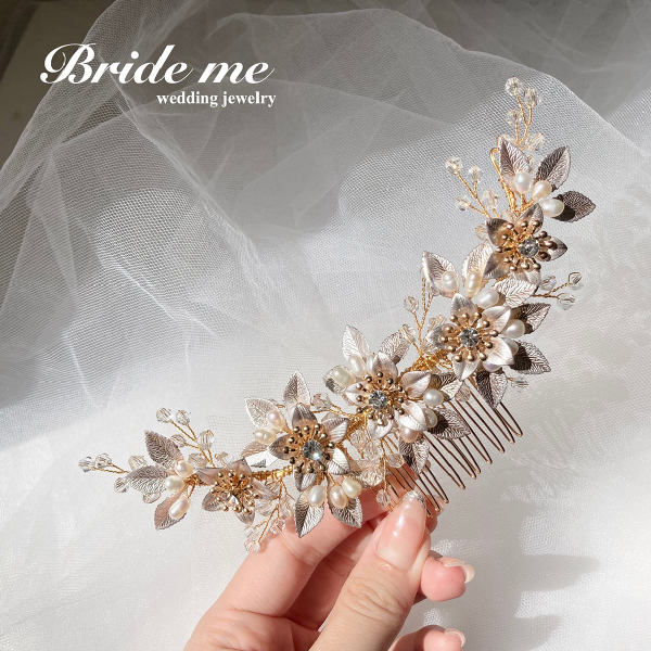 デザインは固定ではなく、ワイヤーでできているので、頭にフィットさせて、自由にデザインを変更して着用が可能です。ゴールド商品のリーフ部分はピンクゴールのようなカラーで、ワイヤーはオレンジ系のゴールドカラーです。