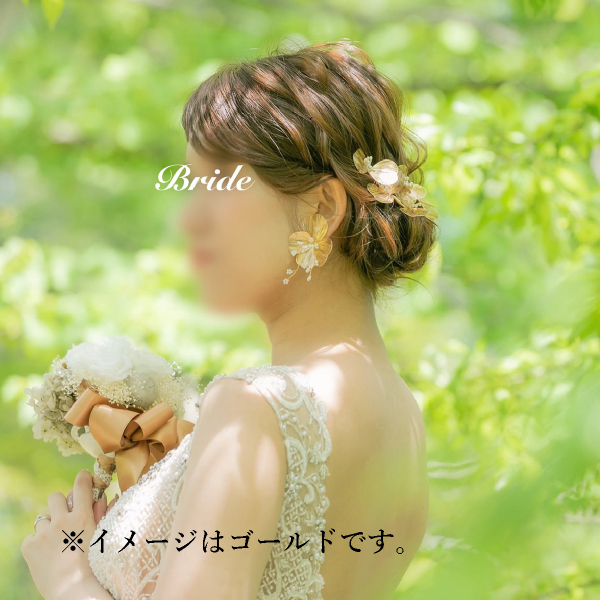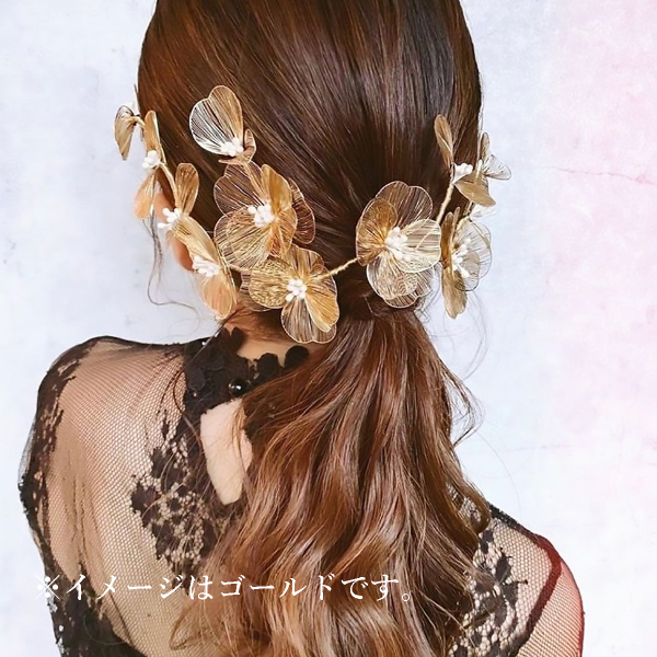 本物のお花が咲いたような、繊細なデザインが美しいヘッドアクセサリーです。珍しいピンクのお色味のヘッドアクセサリーは、ゲストの印象にも残るはず!柔らかく温かみのあるデザインで、ナチュラルウェディングにピッタリ。全体的にワイヤーでできており、花びら部分も立ち上げることができるため、より立体感も出ます。
