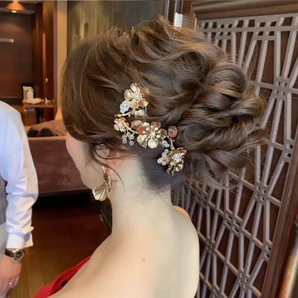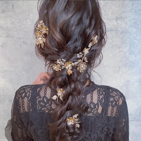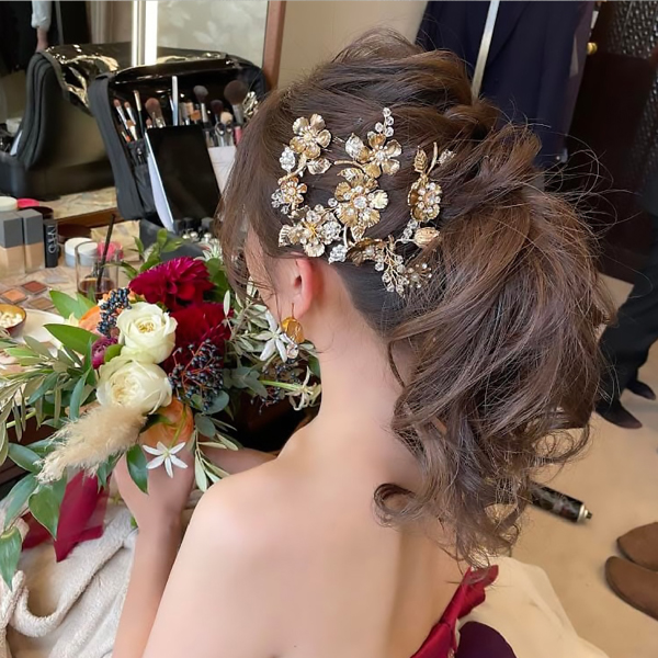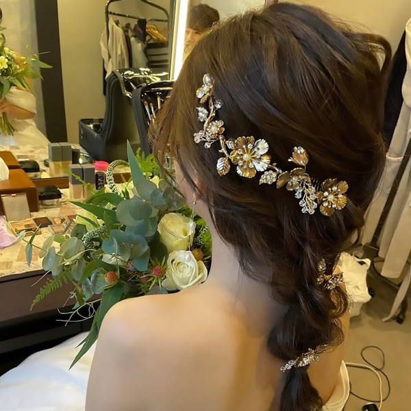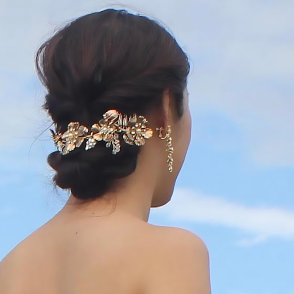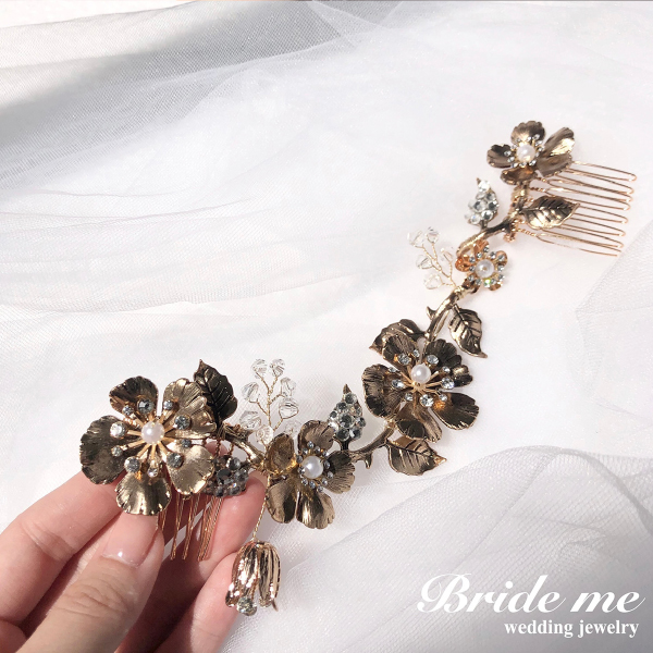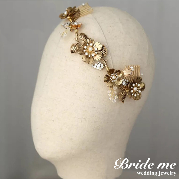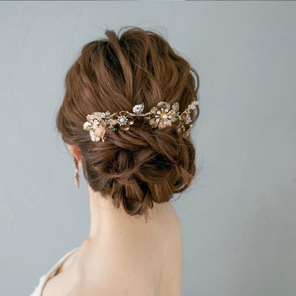 ブロンズのようなお色味のアンティーク風なデザインが目をひく、フラワーモチーフのヘッドアクセサリーです。ワイヤーでできているため、ヘアスタイルにあわせてアレンジできるのが特徴です。シックでエレガントな雰囲気にも、編み込みやハーフアップなどにあわせてフェミニンな雰囲気にも仕上がります。