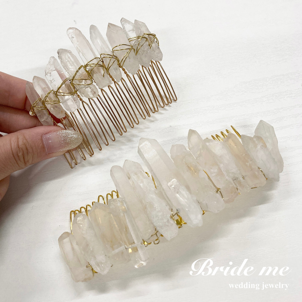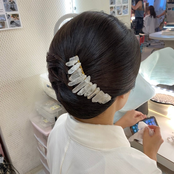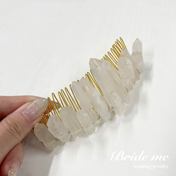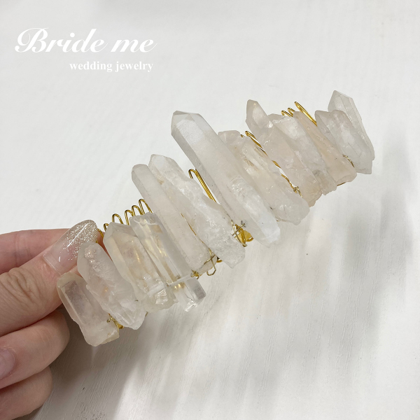 天然石を使用したヘッドドレスは、自然の美しさを身に纏えるシンプルでオシャレなアクセサリーです。色や形、模様が異なる天然石が、花嫁さまのヘアスタイルをより魅力的に彩ります。