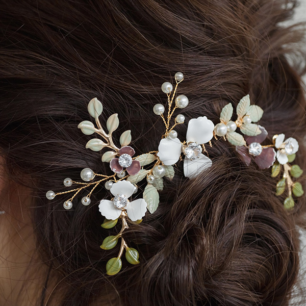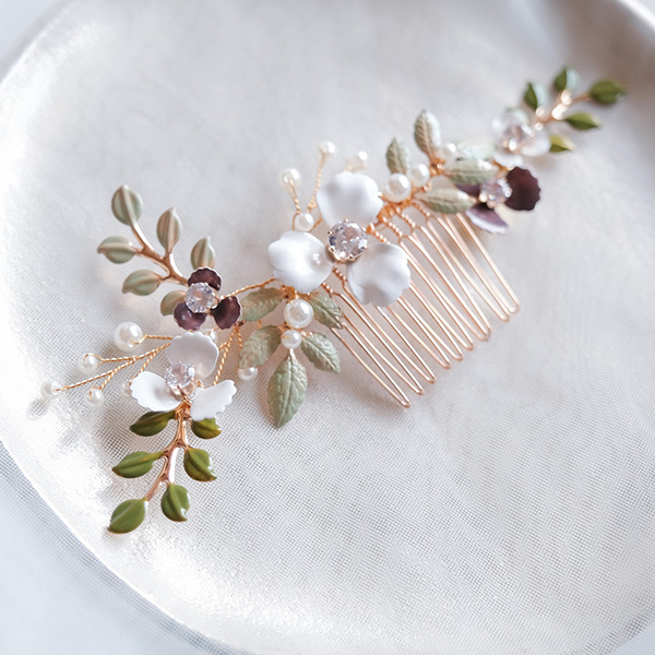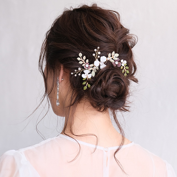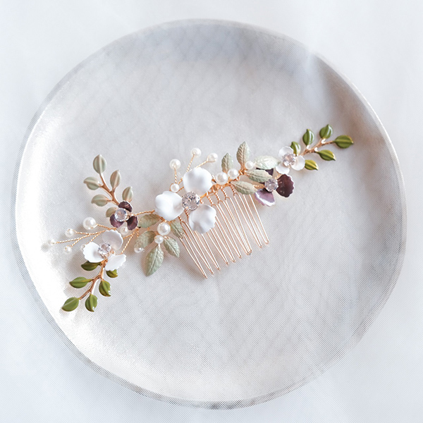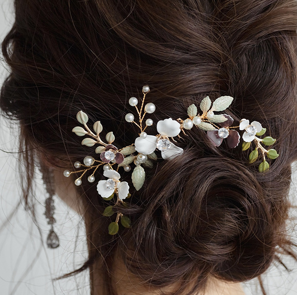 | 材質 | パール、ビジュー、緑のリーフ、白のフラワー |