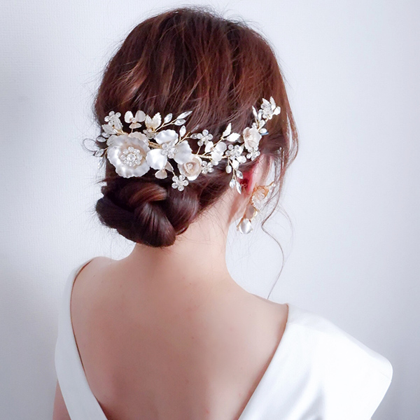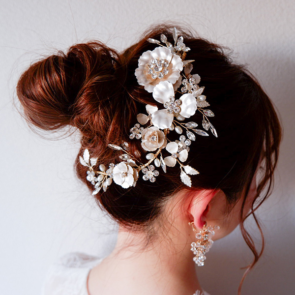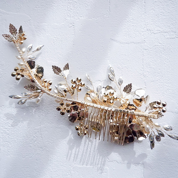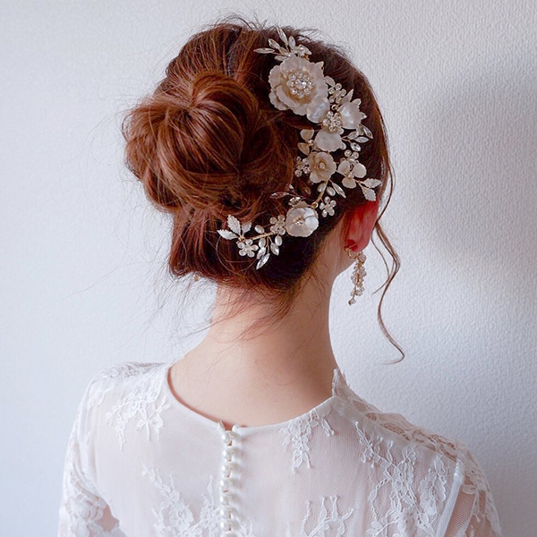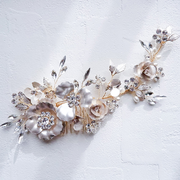 ピンクゴールドフラワーが魅力的なヘッドドレス!