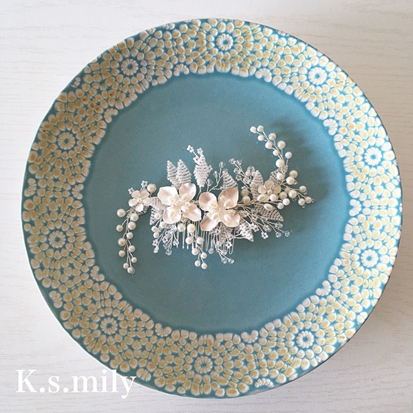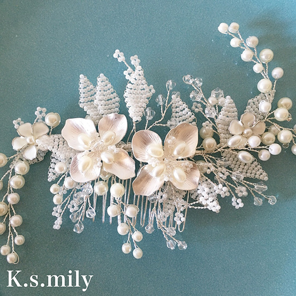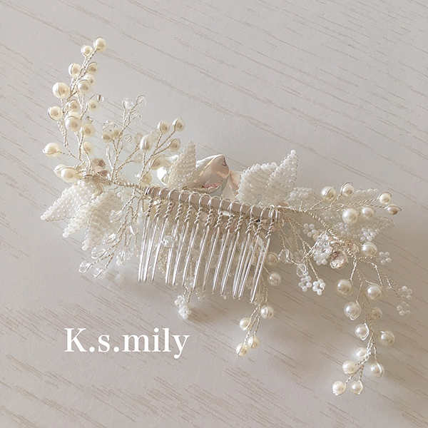 パールやパールビーズがたくさん使われた可愛いヘッドコームで、ナチュラルが好きな方にオススメ!