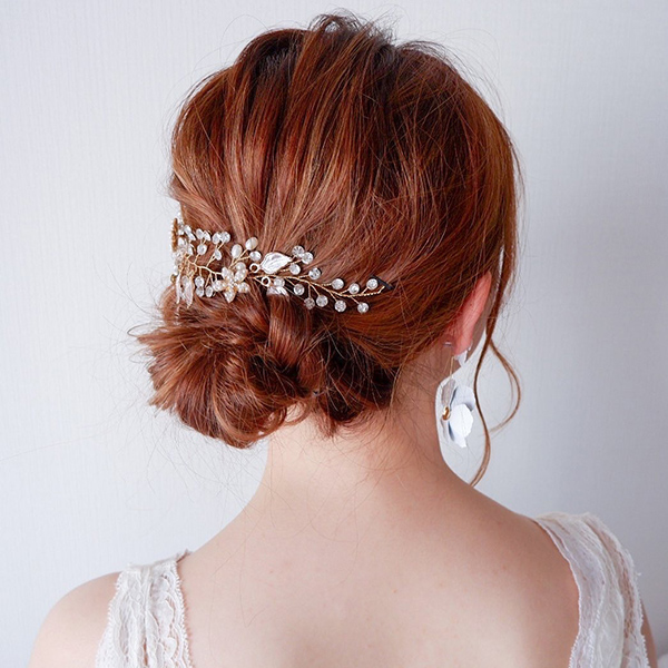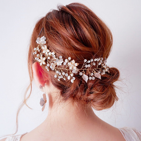 パールやビジュー、ラインストーン、リーフやフラワーと可愛いものが詰まったヘッドドレス!