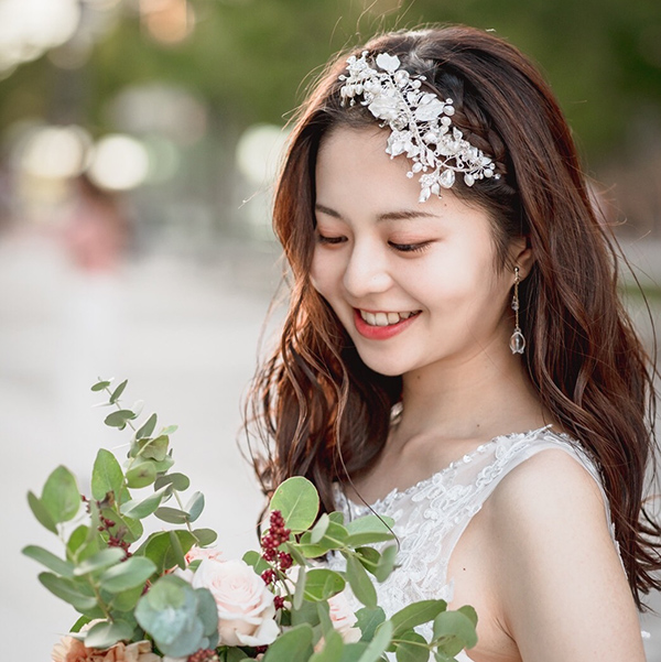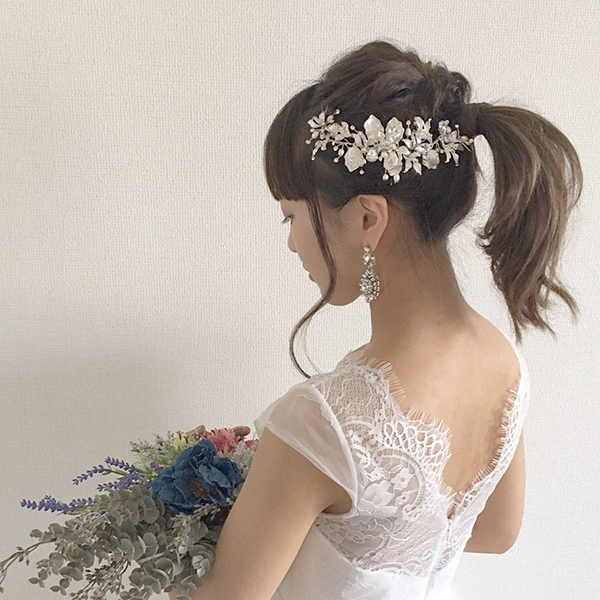 クラシカルにもナチュラルにもなるデザインでどんなドレスでも似合うシルバーワイヤーが相性抜群です。