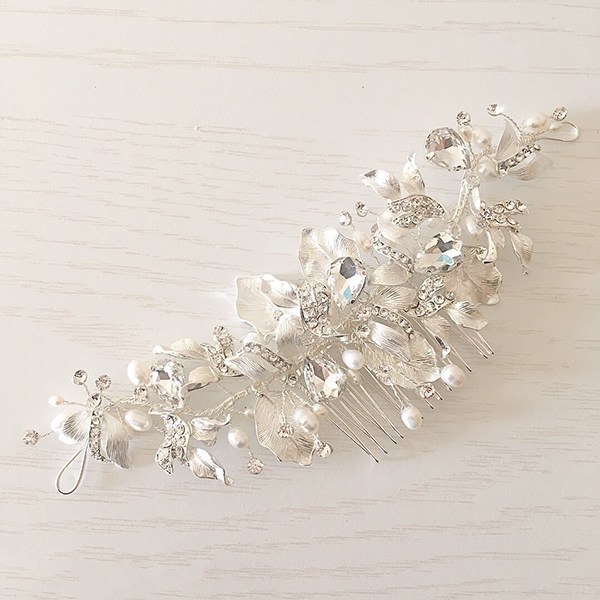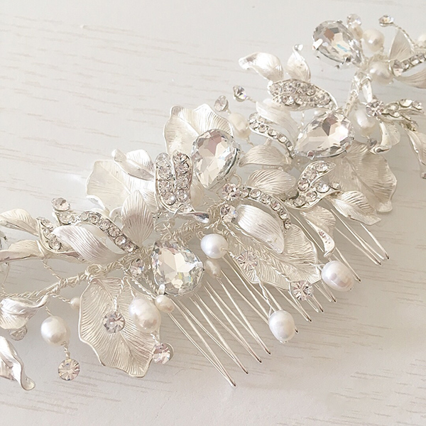 ビジュー、パール、リーフモチーフパーツ使った可愛いヘッドコーム!