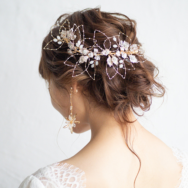 ビジュー、リーフモチーフパーツ使ったとても繊細なデザインのヘッドドレス!