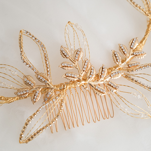 たくさんビジューを使った小枝デザインのヘッドドレスは存在感たっぷり。