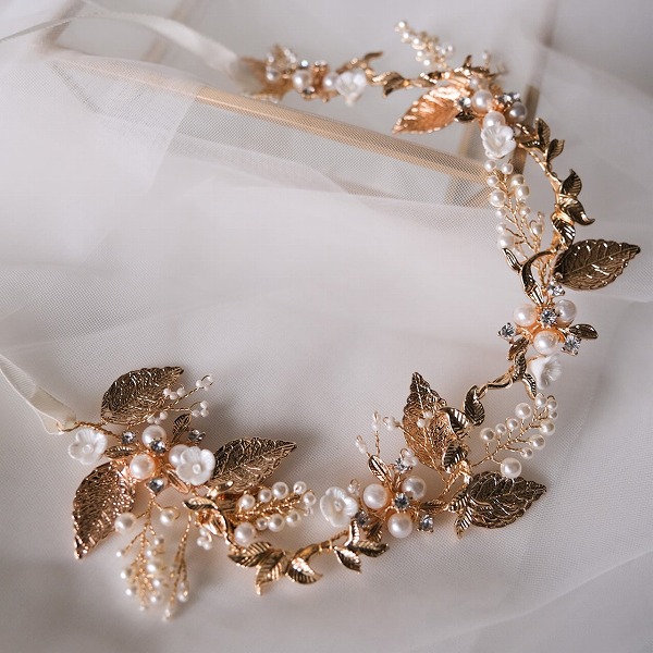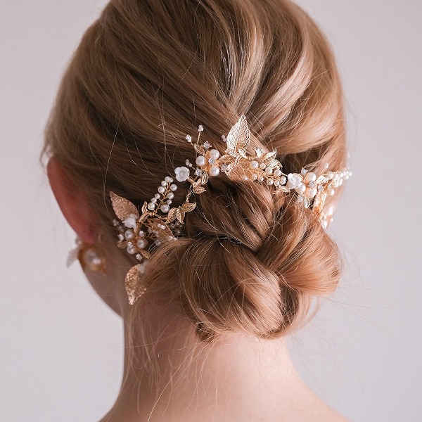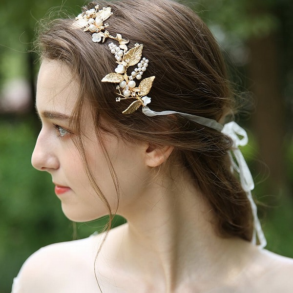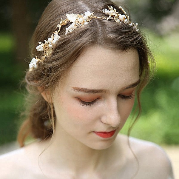 【送料無料】メール便 小枝カチューシャ ブライダルヘッドドレス ビジュー パール ゴールド u28|ウェディング・ブライダルアクセサリーならPIARY(ピアリー)