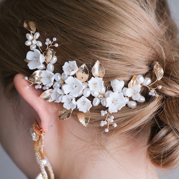 【送料無料】メール便 小枝 ブライダルヘッドドレス パール ゴールド u32|ウェディング・ブライダルアクセサリーならPIARY(ピアリー)