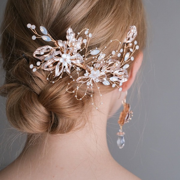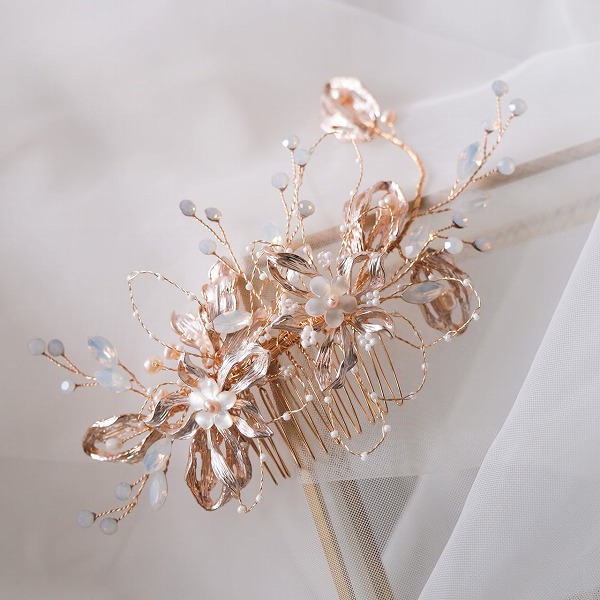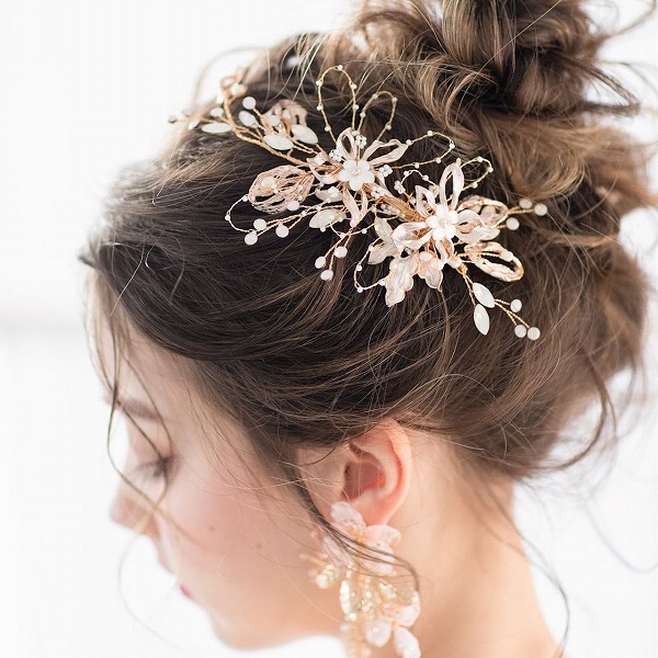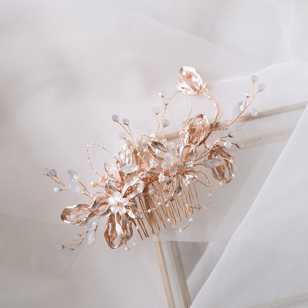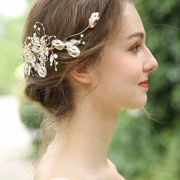 【送料無料】メール便 ブライダルヘッドドレス ビジュー リーフ ボンネ ゴールド u26|ウェディング・ブライダルアクセサリーならPIARY(ピアリー)
