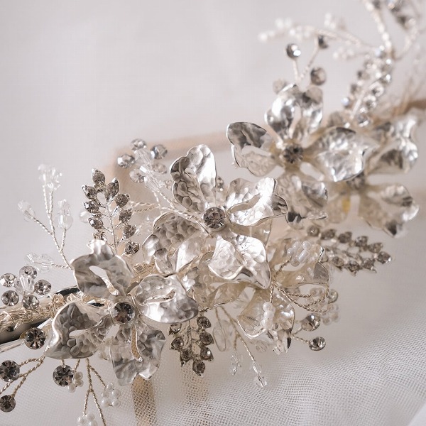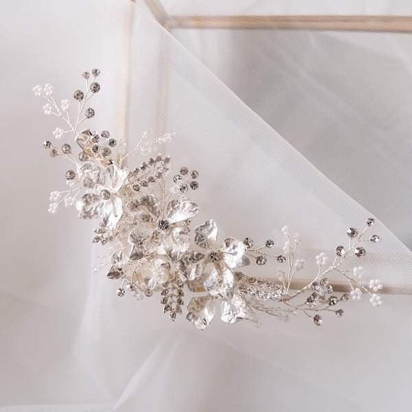 【送料無料】メール便 ブライダルヘッドドレス フラワー リーフ シルバー u24|ウェディング・ブライダルアクセサリーならPIARY(ピアリー)