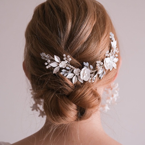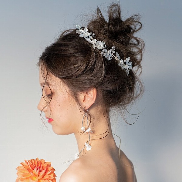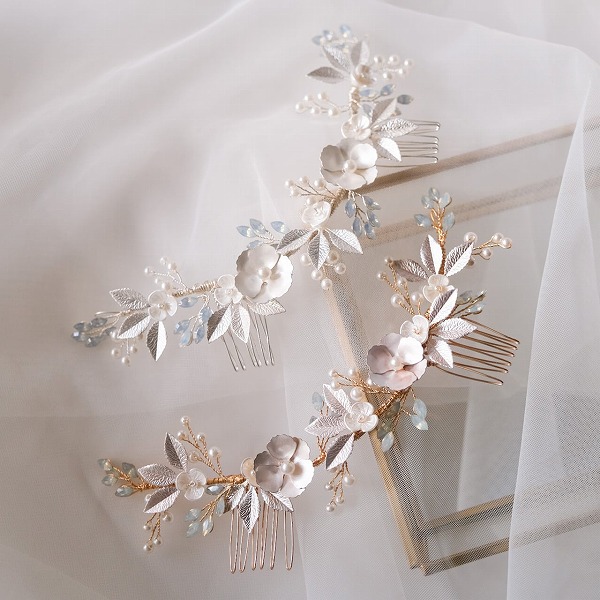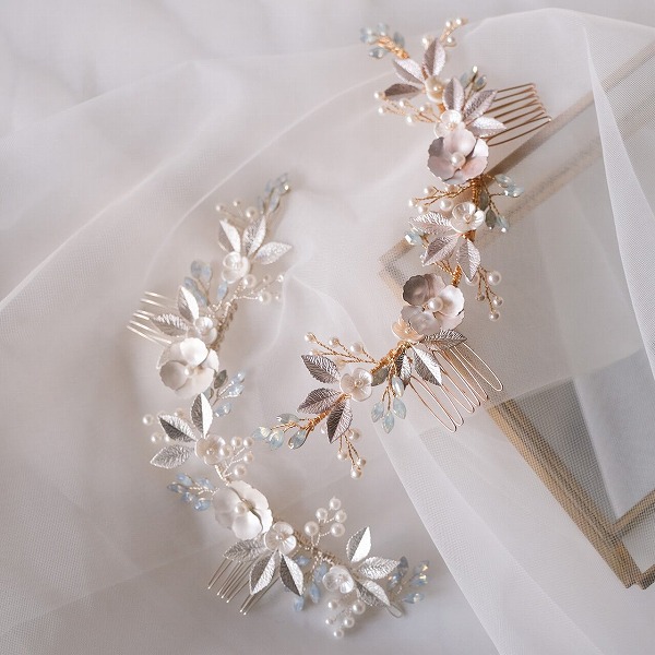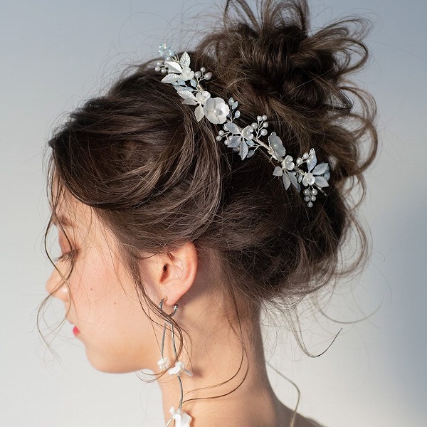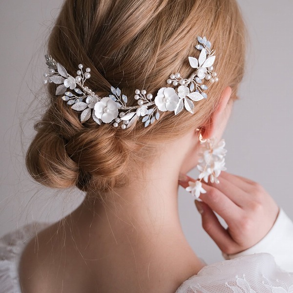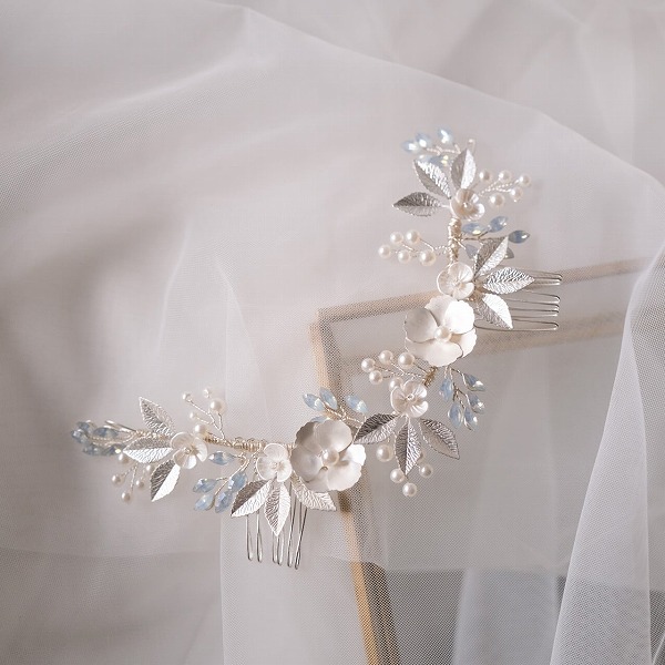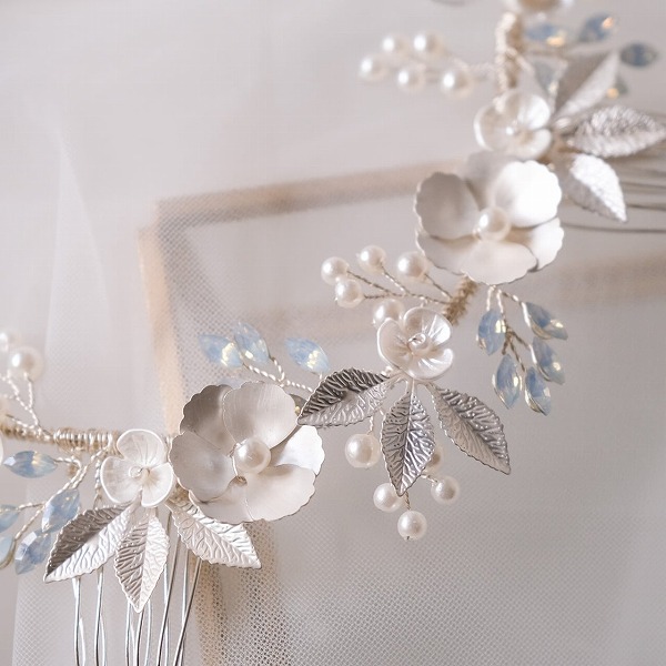 【送料無料】メール便 ブライダルヘッドドレス フラワー リーフ ボンネ シルバー u21|ウェディング・ブライダルアクセサリーならPIARY(ピアリー)