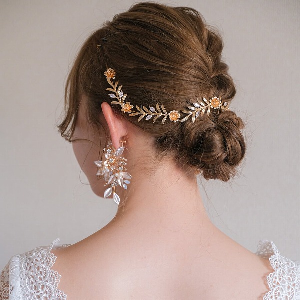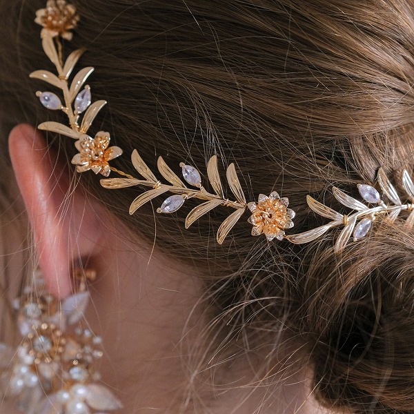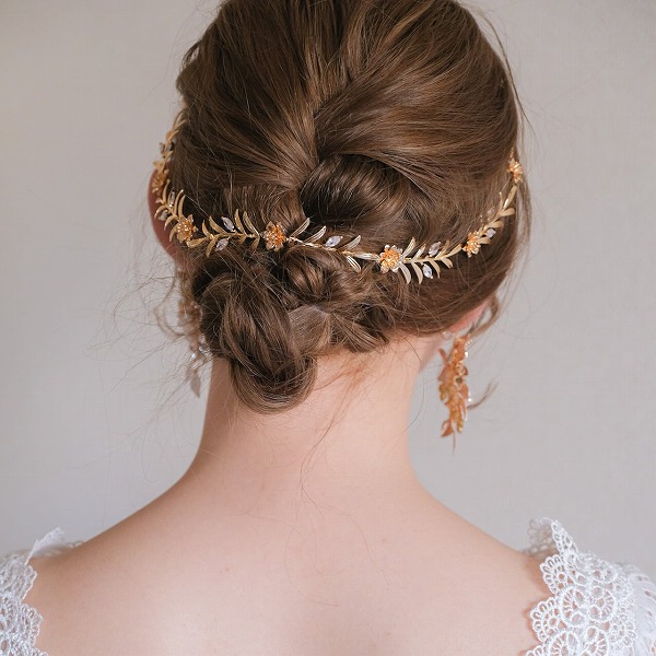 【送料無料】メール便 小枝カチューシャ ブライダルヘッドドレス ナチュラルリーフ ゴールド t1|ウェディング・ブライダルアクセサリーならPIARY(ピアリー)