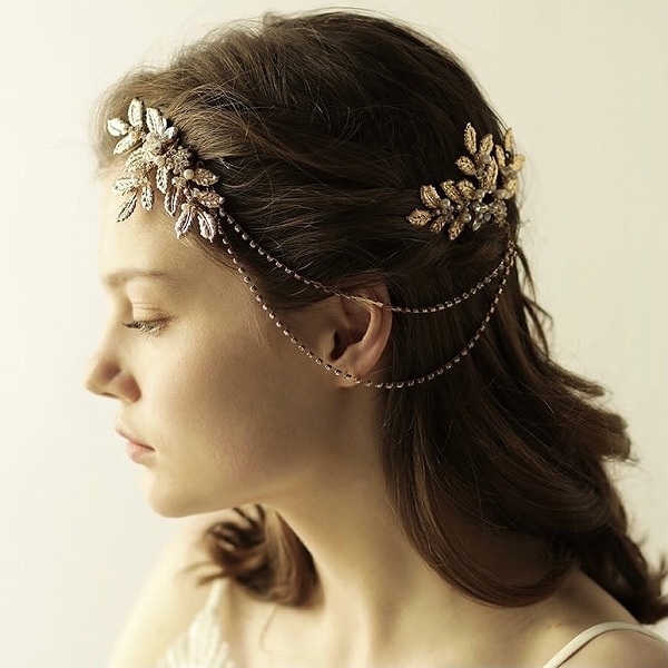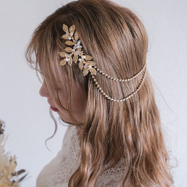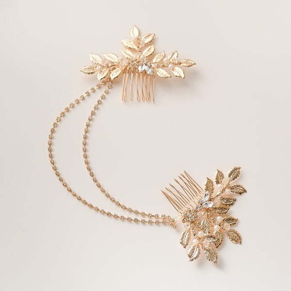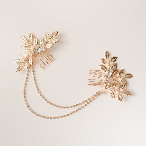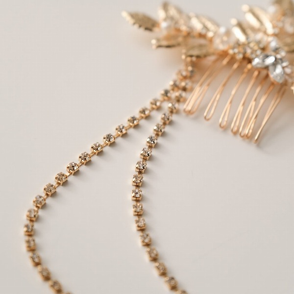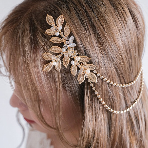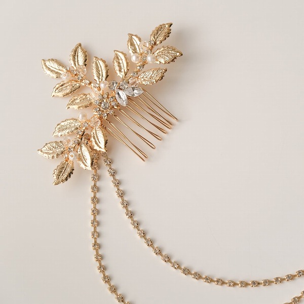 【送料無料】メール便 ブライダルヘッドドレス ヘッドコーム ビジュー リーフ ゴールド s27|ウェディング・ブライダルアクセサリーならPIARY(ピアリー)
