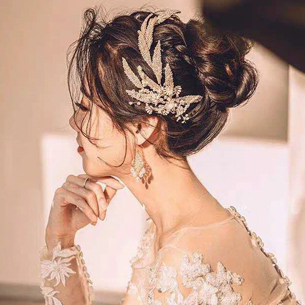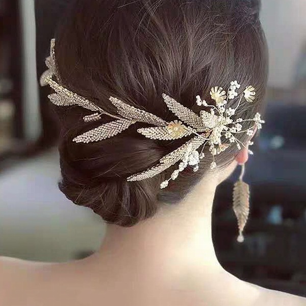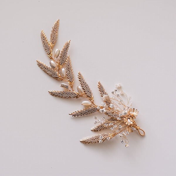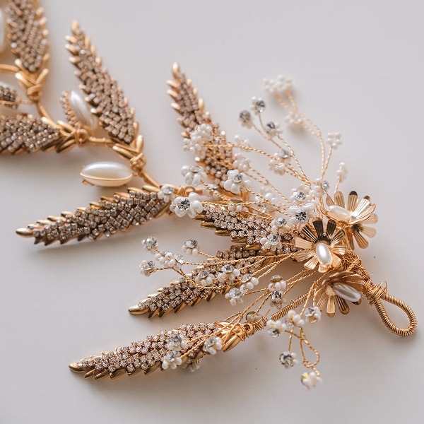 【送料無料】メール便 ブライダルヘッドドレス ビジュー リーフ ボンネ ゴールド s10|ウェディング・ブライダルアクセサリーならPIARY(ピアリー)