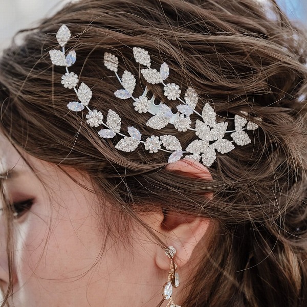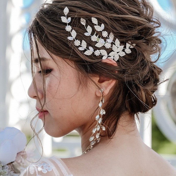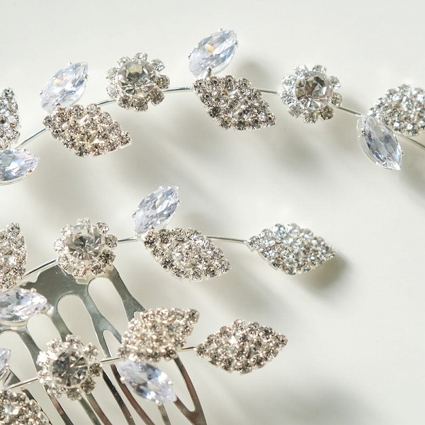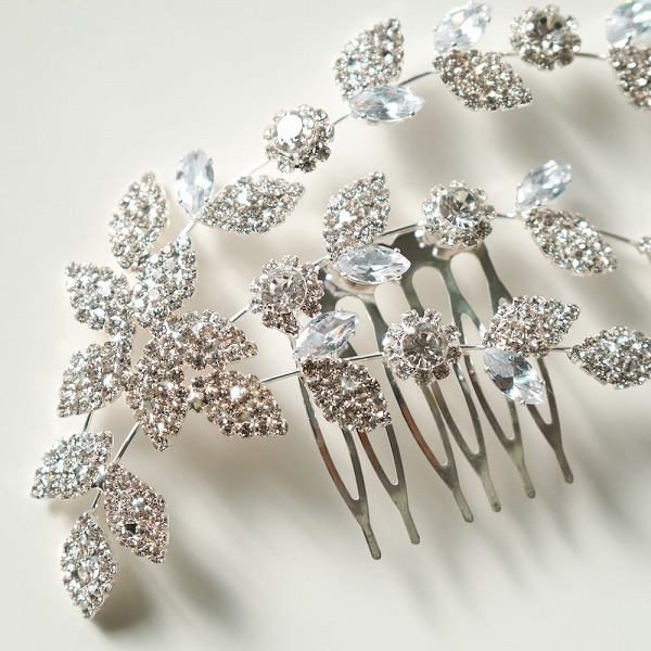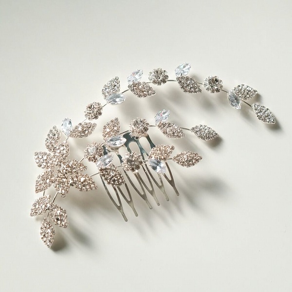 【送料無料】メール便 ブライダルヘッドドレス ビジュー ジルコニア リーフ シルバー r27|ウェディング・ブライダルアクセサリーならPIARY(ピアリー)