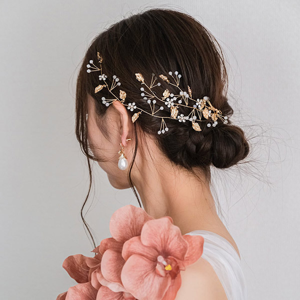 華やかで上品なデザインは、上品な大人可愛い雰囲気を演出♪どんなヘアスタイルにも合わせやすく、ウェディングシーンをより美しく魅せてくれます。