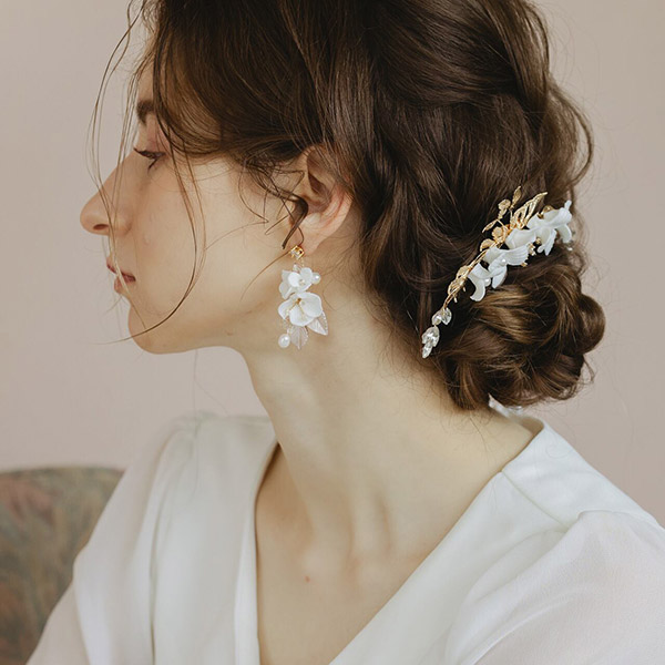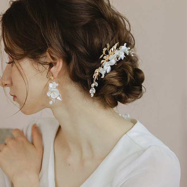 花嫁カラーの可憐なホワイトフラワーと、パールビーズが織り成す上品なヘッドドレスです!