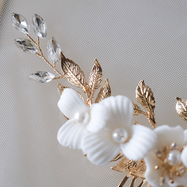 【送料無料】メール便 ウェディングヘッドドレス 小枝 ホワイトフラワー パール ゴールド w22-hd130|ウェディング・ブライダルアクセサリーならPIARY(ピアリー)