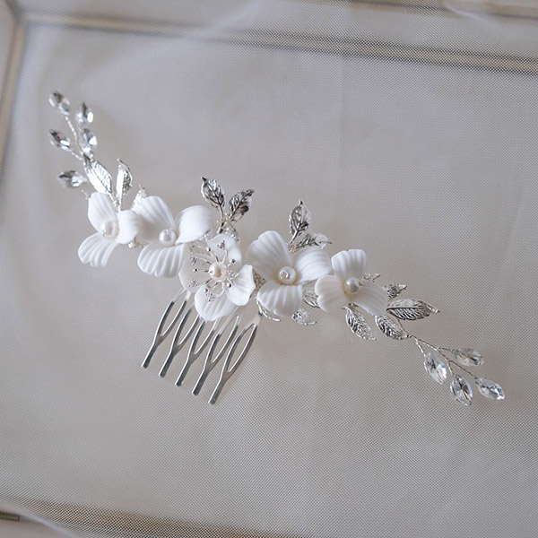 【送料無料】メール便 ウェディングヘッドドレス 小枝 ホワイトフラワー パール シルバー w21-hd129|ウェディング・ブライダルアクセサリーならPIARY(ピアリー)