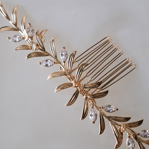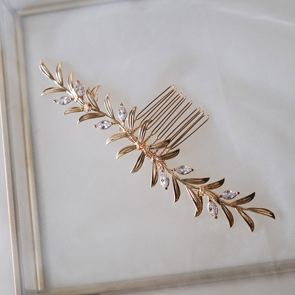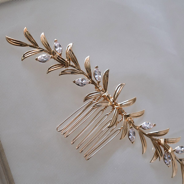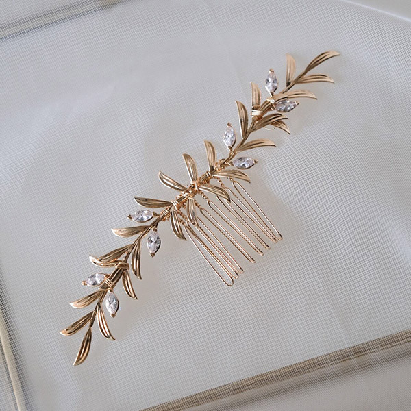 【送料無料】メール便 ウェディングヘッドドレス ジルコニア リーフ ヘッドコーム ゴールド w24-hd132|ウェディング・ブライダルアクセサリーならPIARY(ピアリー)