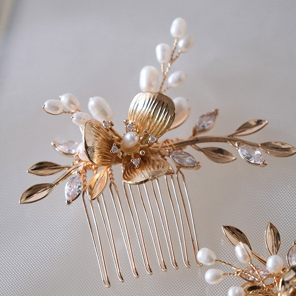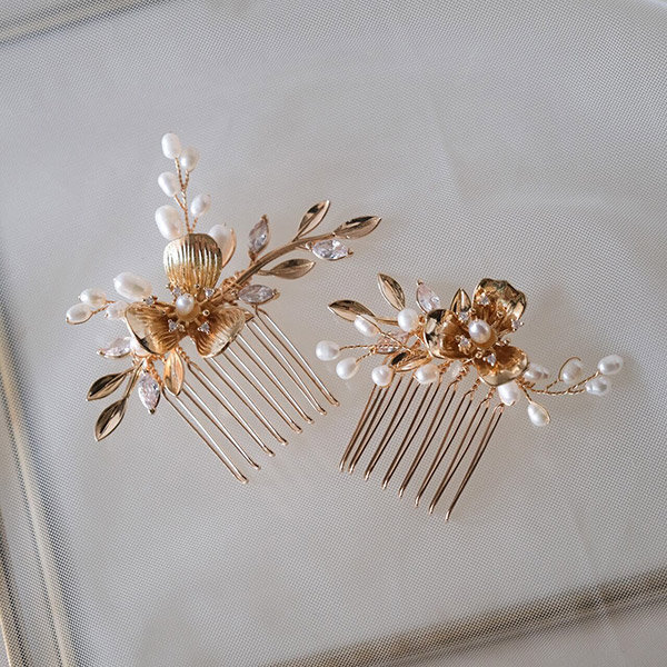 【送料無料】メール便 (2点セット)ウェディングヘッドドレス ジルコニア リーフフラワー ゴールド w28-hd136|ウェディング・ブライダルアクセサリーならPIARY(ピアリー)