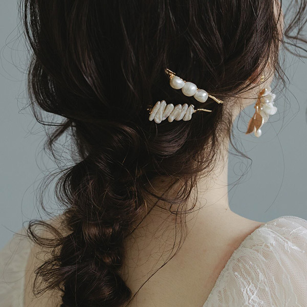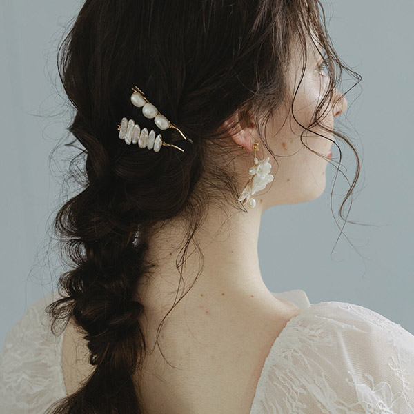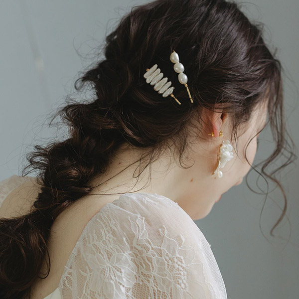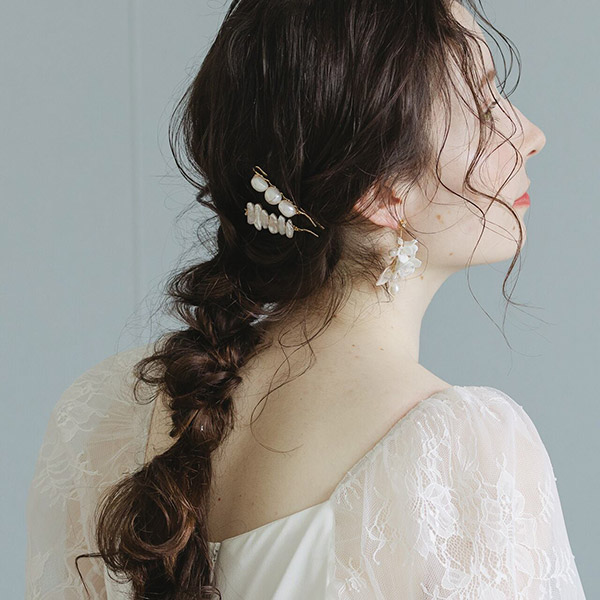 パールの上品な輝きが、花嫁の髪をより一層華やかに飾ります。