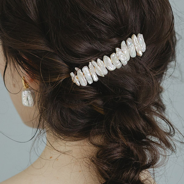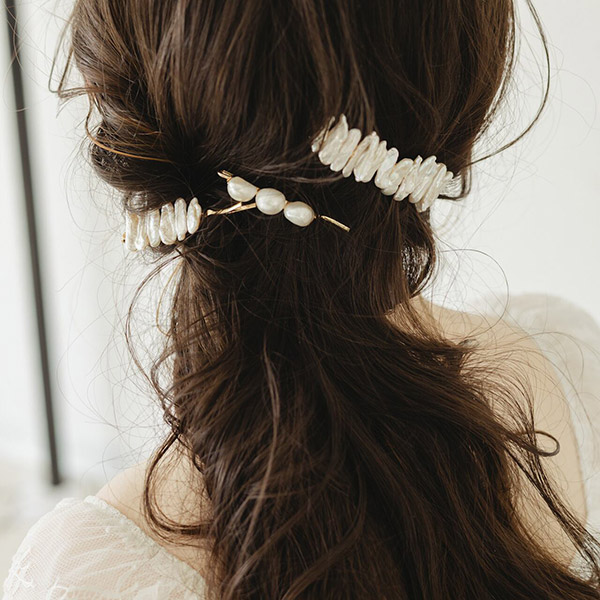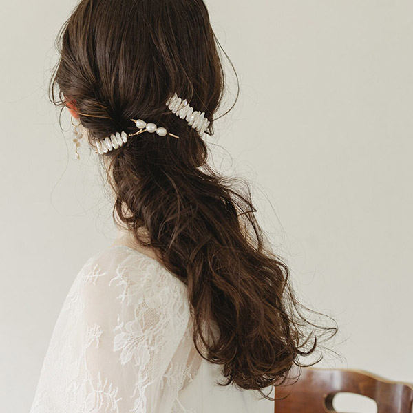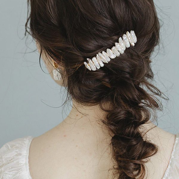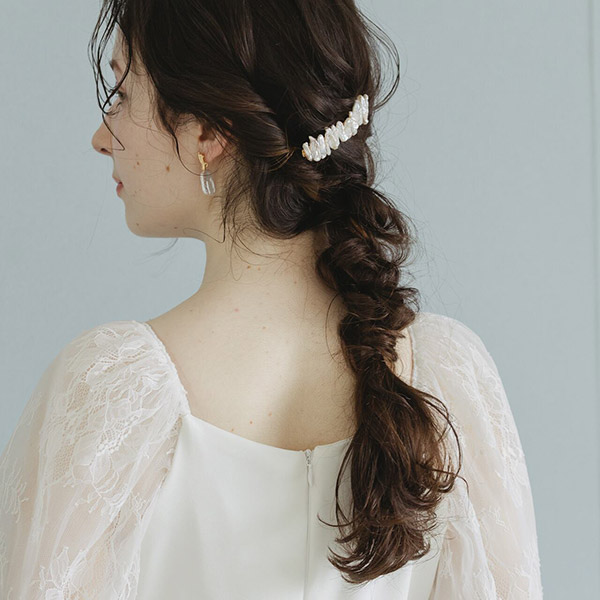パールの上品な輝きが、花嫁の髪をより一層華やかに飾ります。